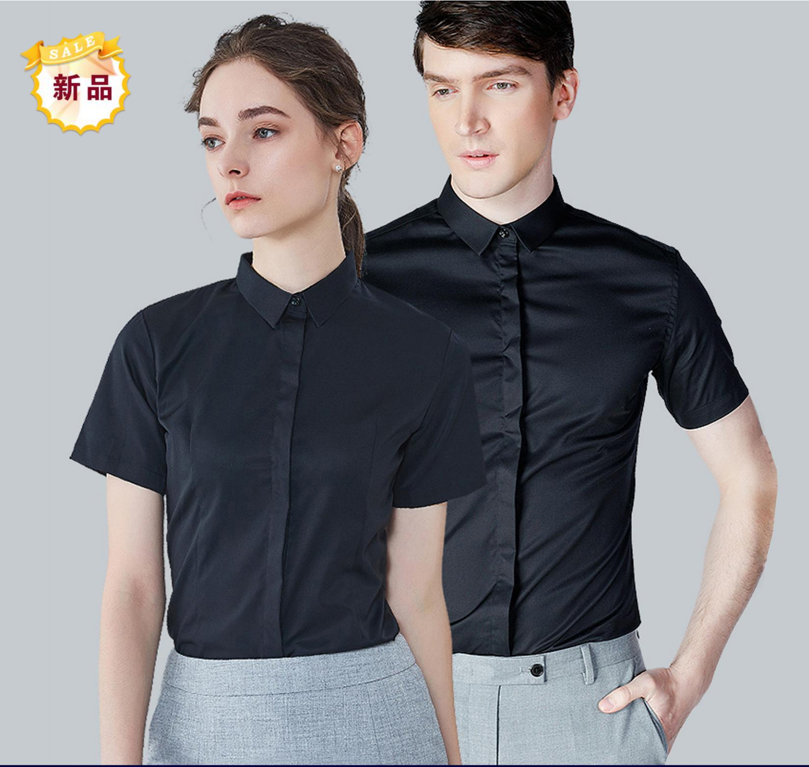 款式:男/女小方领  暗门襟  无胸袋